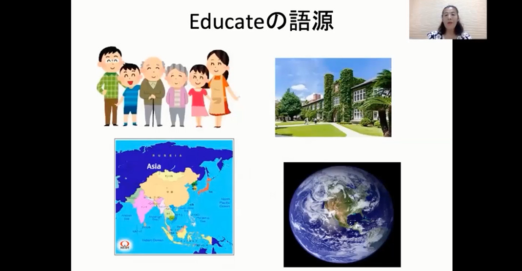 Educate(教育をする)という語の語源の1つに、「引き出す」という意味がある。つまり、それぞれの人が持っている輝く部分を見つけて引き出し花を開かせる、それが教育ではないだろうか。その花が開くことが、私たちの所属する社会への貢献である。そして、社会に貢献することによって、私たちそれぞれの人生も充実する。それが教育なのではないか。