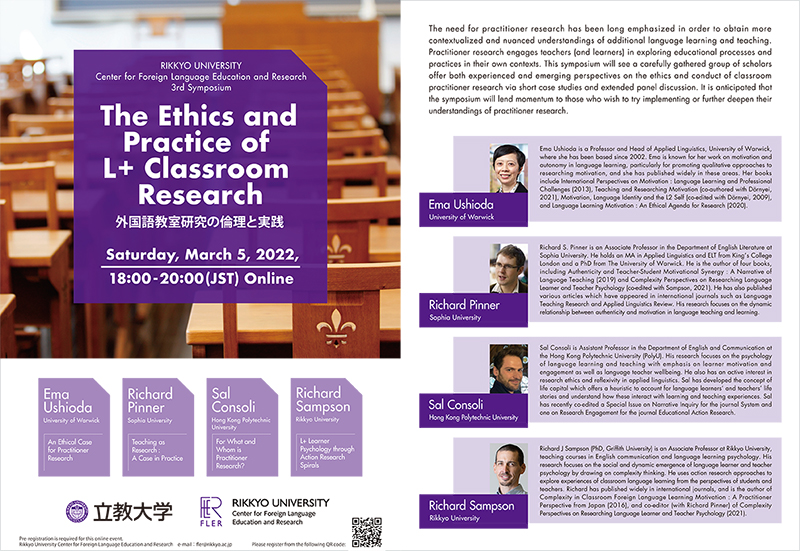March 5, 2022 FLER Symposium「The Ethics and Practice of L+ Classroom Research」